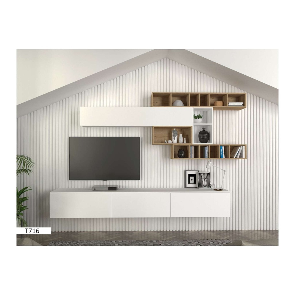 Table TV T716 Blanc avec Étagère – Meuble TV Moderne et Design