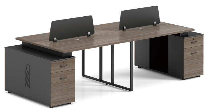 Pensé pour optimiser l’espace et la productivité, ce bureau permet à deux utilisateurs de travailler confortablement face à face, tout en bénéficiant d’une excellente organisation grâce aux caissons de rangement intégrés. Les écrans de séparation assurent une meilleure concentration et un environnement de travail plus intime.